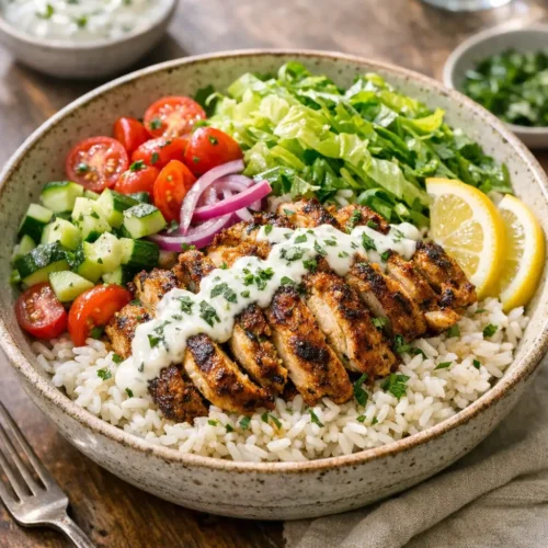 Juicy, spice‑rubbed chicken, crunchy vegetables, and a cool lemon‑garlic yogurt sauce over fluffy rice—these bowls deliver big flavor without complicated steps. Chicken shawarma bowls show up at casual spots across the Middle East and in countless takeout shops worldwide, but this version is tailored for a home kitchen and a weeknight.