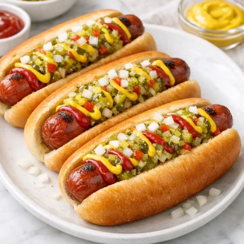 Classic hot dogs with homemade relish are the kind of meal you can pull off even when the fridge looks bare and everyone’s already hungry. You get the snap of a grilled or pan-seared dog, a soft toasted bun, and a bright, tangy relish that wakes everything up.