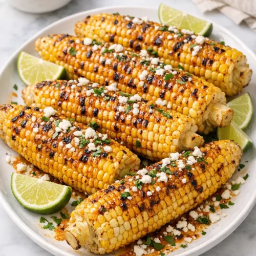 Kitchen note: If you’re serving a crowd and need to hold the corn for 10–15 minutes, tent the platter loosely with foil. Don’t wrap tightly, or the residual steam can make the chili lime butter slide off and soften the char.