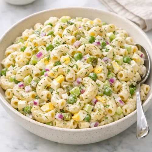 Creamy macaroni salad with celery and dill is one of those side dishes that quietly does a lot of work for you. It’s familiar and picnic-friendly, but the fresh dill and crunchy celery keep it from feeling heavy or dull.