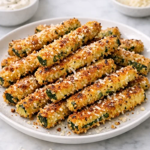 You can cut the zucchini into sticks a few hours ahead and store them in the fridge wrapped in a towel inside a container. Before breading, pat them dry again because they’ll release water as they sit.