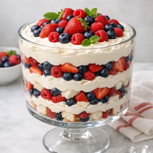 A Fourth of July Trifle with Berries and Cream offers a clear, manageable path from simple components to a festive centerpiece dessert. Once you’ve made it once, you can adjust the sweetness, cake type, and berry mix to suit the people you cook for and what looks good at the market.