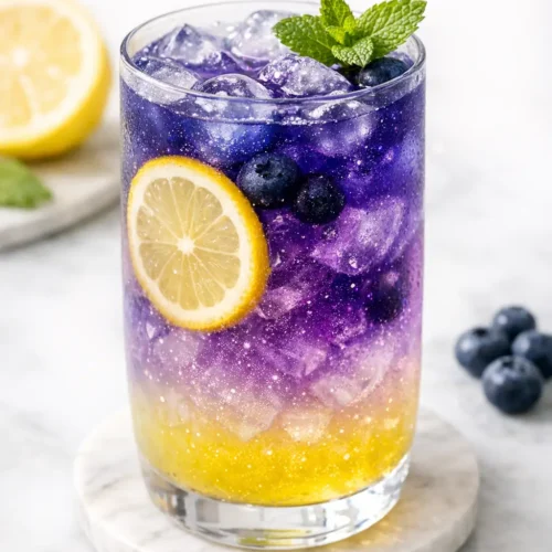 A Galaxy Summer Mocktail is basically a color show you can drink: deep ocean-blue butterfly pea tea meets bright lemon and turns purple right in the glass. It’s not fussy, but there are two parts you can’t skip—strong, fully chilled tea and an acidic lemon layer. If you’re making this with kids underfoot or you’re juggling dinner, set out the glasses with ice and lemon syrup first, then bring the tea over last so everyone can do the “galaxy pour” themselves (it buys you five quiet minutes). I started making this for summer birthdays after I tested a few versions that looked cool but tasted flat.