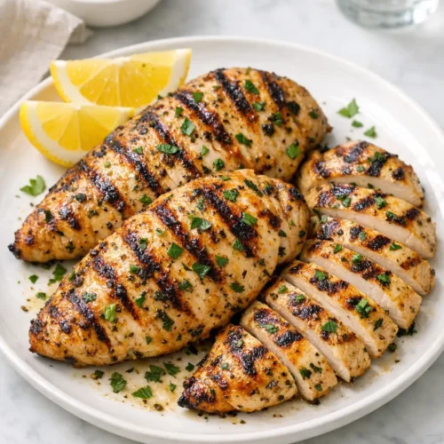 Grilled chicken with lemon herb marinade is one of those dishes that feels a little special without asking much of you. Bright citrus, fresh herbs, and a quick grill transform basic chicken breasts into something you can serve for a weeknight dinner, a backyard cookout, or sliced over salads for lunches.