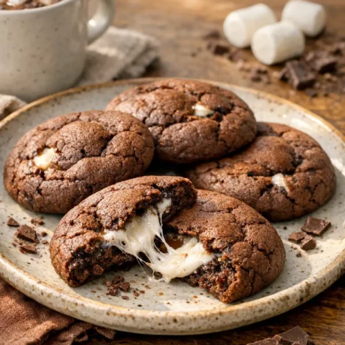 These Hot Cocoa Marshmallow‑Stuffed Cookies bring the mug-of-cocoa experience into a soft, chewy cookie with a molten marshmallow pocket inside. The dough uses real hot cocoa mix for that familiar nostalgic flavor, supported by cocoa powder for depth. Expect a brownie-like chew and pockets of sweetness, not a crisp shortbread. If you’re new to filled cookies, this recipe walks you through the few spots that need attention.