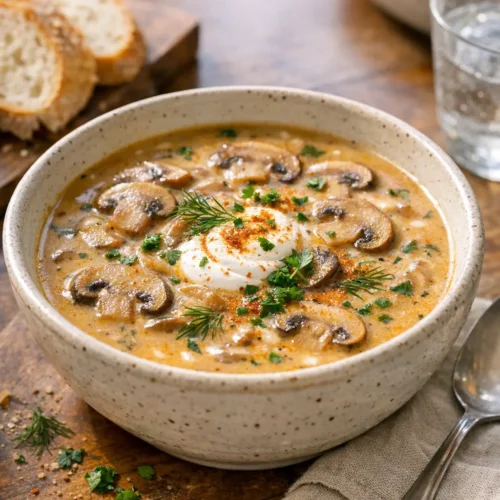 A pot of Hungarian Mushroom Soup checks every comfort box: silky spoonfuls, earthy mushrooms, fragrant dill, and just enough paprika warmth to keep things interesting. You’ll find versions of this soup served in cafés and homes throughout Central Europe, often as a starter but hearty enough for dinner with bread and a salad. Expect a lightly creamy texture rather than a heavy chowder, and a balanced tang from lemon and sour cream.