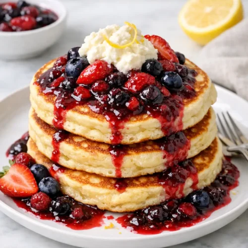 Lemon ricotta pancakes with berry compote offer a useful balance of comfort and freshness, with a texture that feels a little more luxurious than everyday pancakes. Once you’ve made the recipe once or twice, the steps will feel straightforward enough to bring out for guests or for a quieter weekend breakfast.