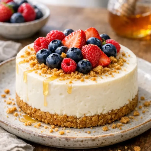 Optional toppings: fresh berries, thin honey drizzle, extra cookie crumbs, or a quick berry compote.
