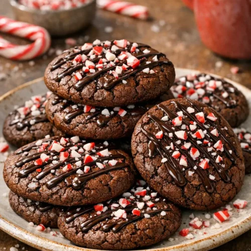 - Visuals: Shiny, crackled tops are a sign the sugar dissolved properly and the batter rested. A chocolate drizzle gives a bakery gloss and anchors the peppermint bits.