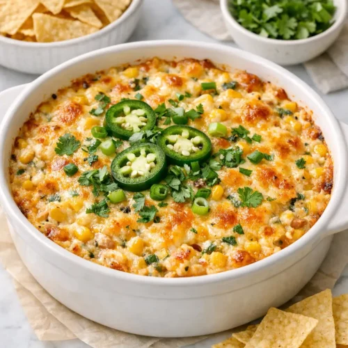 Corn has been a staple ingredient across the Americas for thousands of years, long before it reached other parts of the world. Many contemporary corn dips, including this style of hot, cheesy version, draw loose inspiration from Mexican street snacks that pair corn with creamy, tangy, and chili-forward elements, such as esquites and elote.