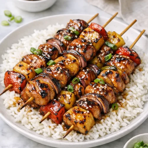 Teriyaki chicken skewers with pineapple glaze hit that sweet-salty-charred spot without asking for much in return. You get juicy marinated chicken, sticky grilled pineapple, and glossy sauce, all in one hand. It’s weeknight-friendly if you marinate ahead, and it’s the kind of dinner kids will actually eat without a negotiation.